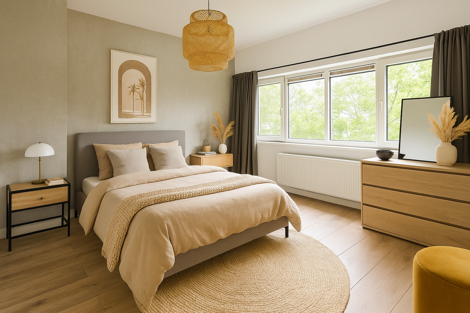 Twee lichte slaapkamers met grote ramen en een frisse uitstraling.