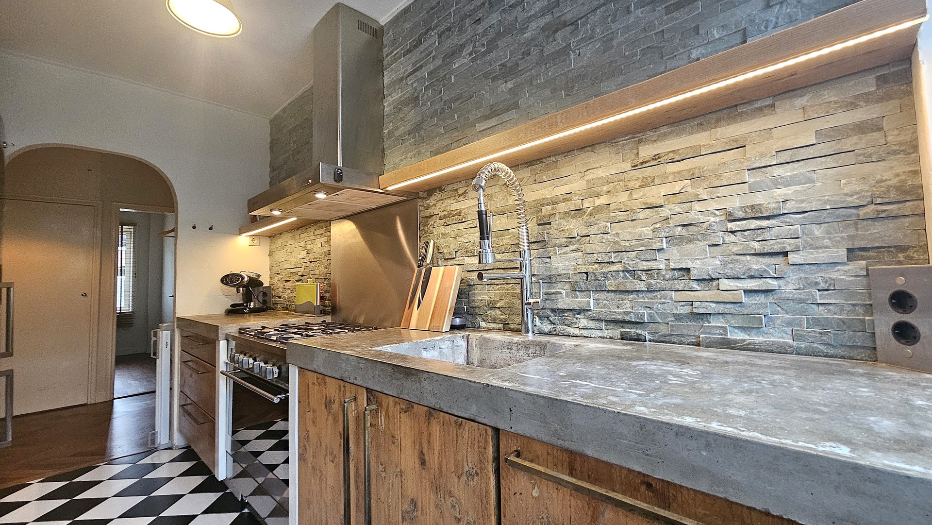 Binnen tref je een stijlvol ingerichte woning, verdeeld over de beletage. De ruime hal met handige bergkasten leidt naar een moderne keuken, volledig uitgerust met alle gemakken. Vanuit hier stap je direct het buitenleven in: een fantastische achtertuin van ruim 90 m², bestaande uit een verhoogd terras en een lager gelegen tuin met kunstgras – ideaal voor een borrel in de zon of een ontspannen avond buiten.