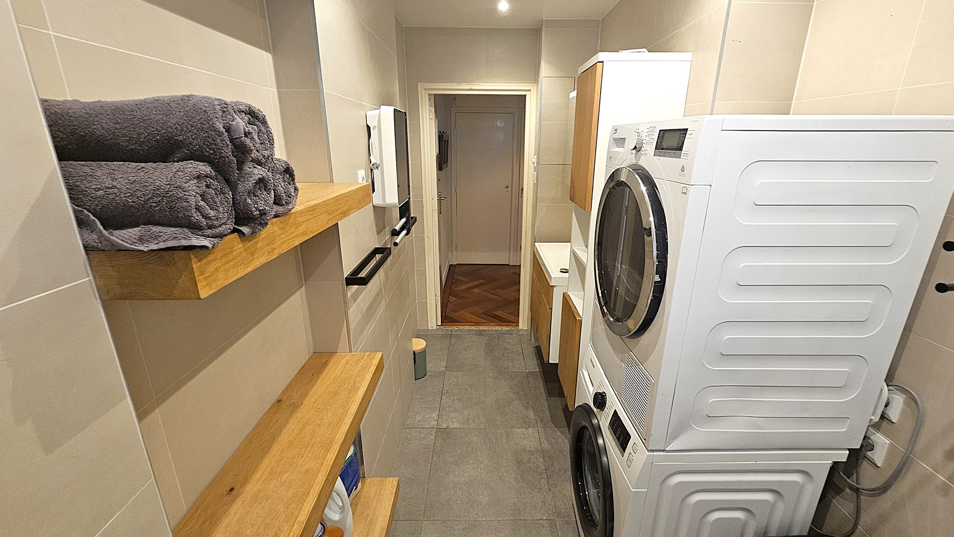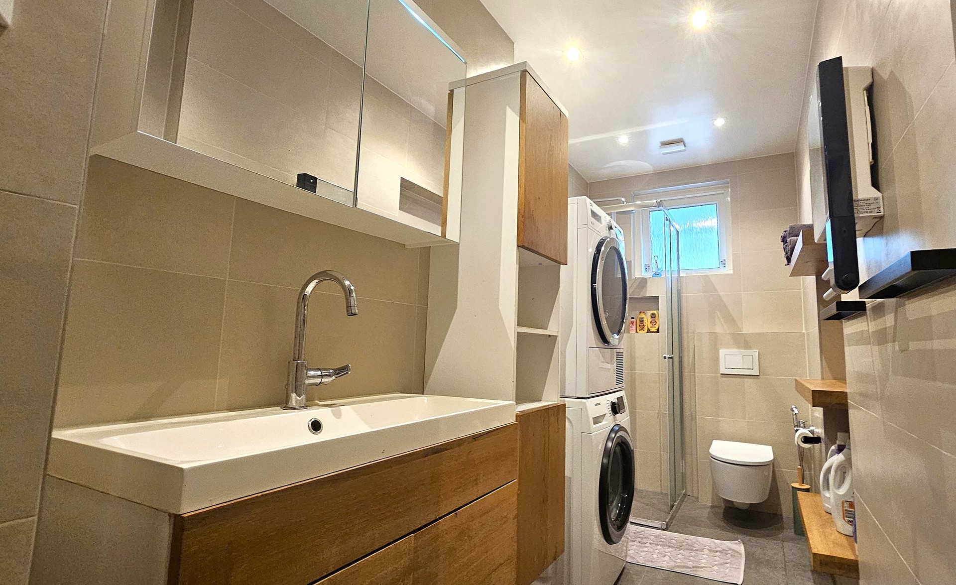 Verder beschikt de woning over een eerste badkamer met douche, toilet, wastafel, wasmachine en droger. De slaapkamer met hoogslaper en ensuite woon-/werkkamer maken dit een woning die zowel comfort als functionaliteit biedt – ideaal voor wie stijlvol, praktisch en rustig wil wonen.