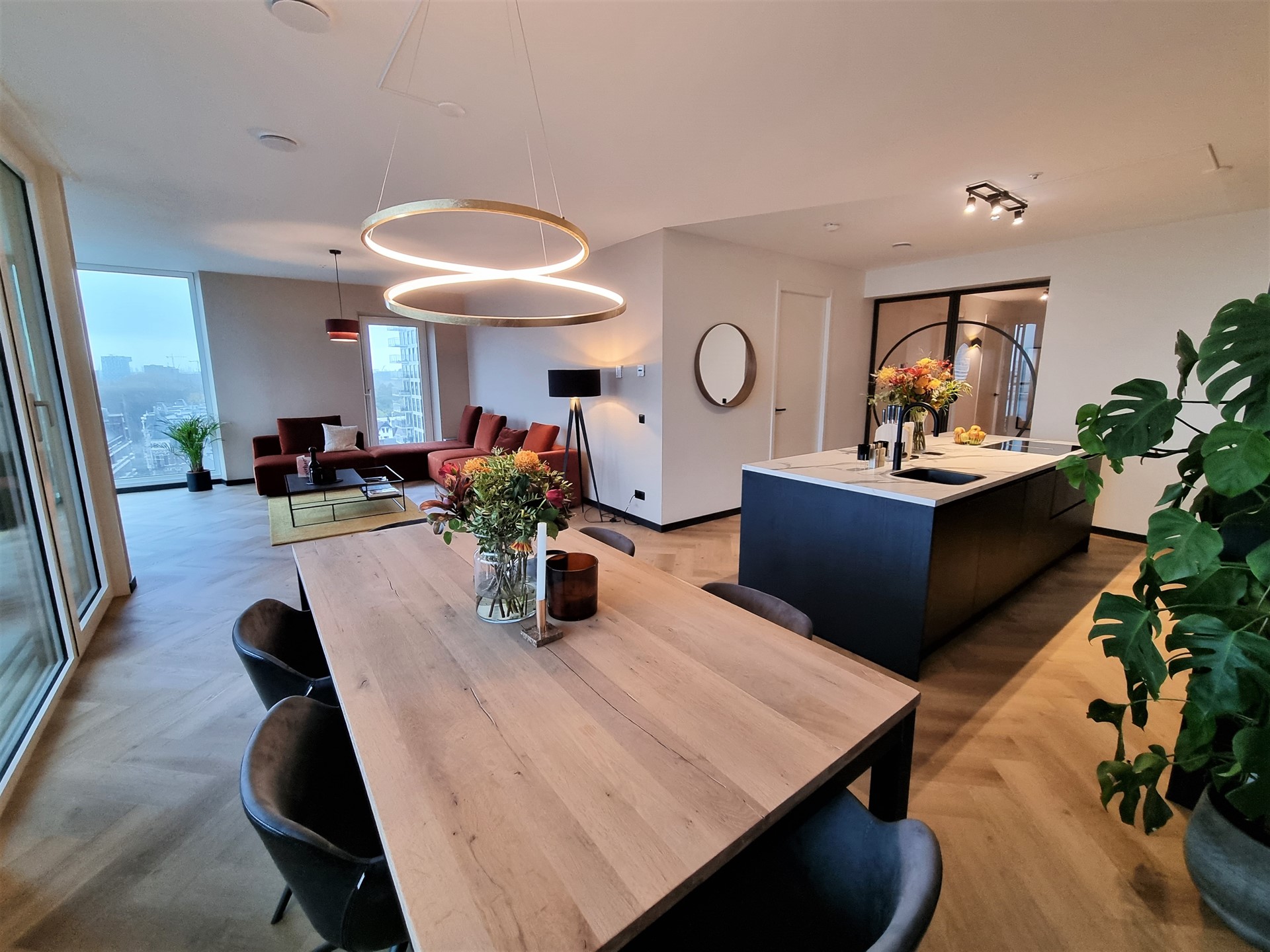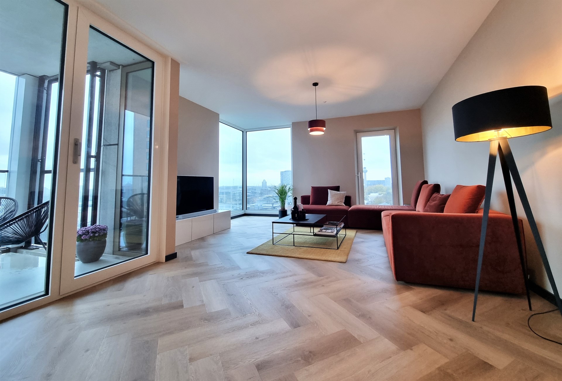 As of May 2026, this fantastic and luxuriously furnished 4 room apartment of 132m2 (!) will be available for rent for max 24 months. The apartment in "De Zalmhaven" is located on the 10th floor of the highest residential tower in the Netherlands, with a beautiful view over the Maas and Het Park, where the Euromast is located at the end of the Parklaan.