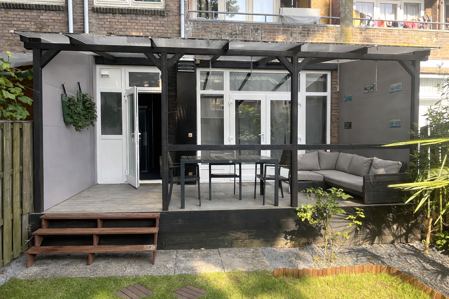 De heerlijke tuin met prachtige veranda vormt een verlengstuk van de woning en is een ideale plek om vrijwel het hele jaar door buiten te zitten. Achterin bevindt zich bovendien een ruime berging, perfect voor fietsen, gereedschap of hobby’s. Extra opslag is er dankzij de inpandige kelder/berging.