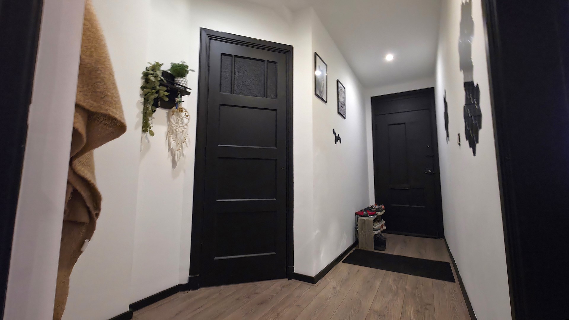 Via de centrale entree bereik je de woning. Hier vind je direct meerdere vaste bergingen, ideaal voor jassen, voorraad of was apparatuur. Praktisch detail: een separaat toilet, altijd prettig.