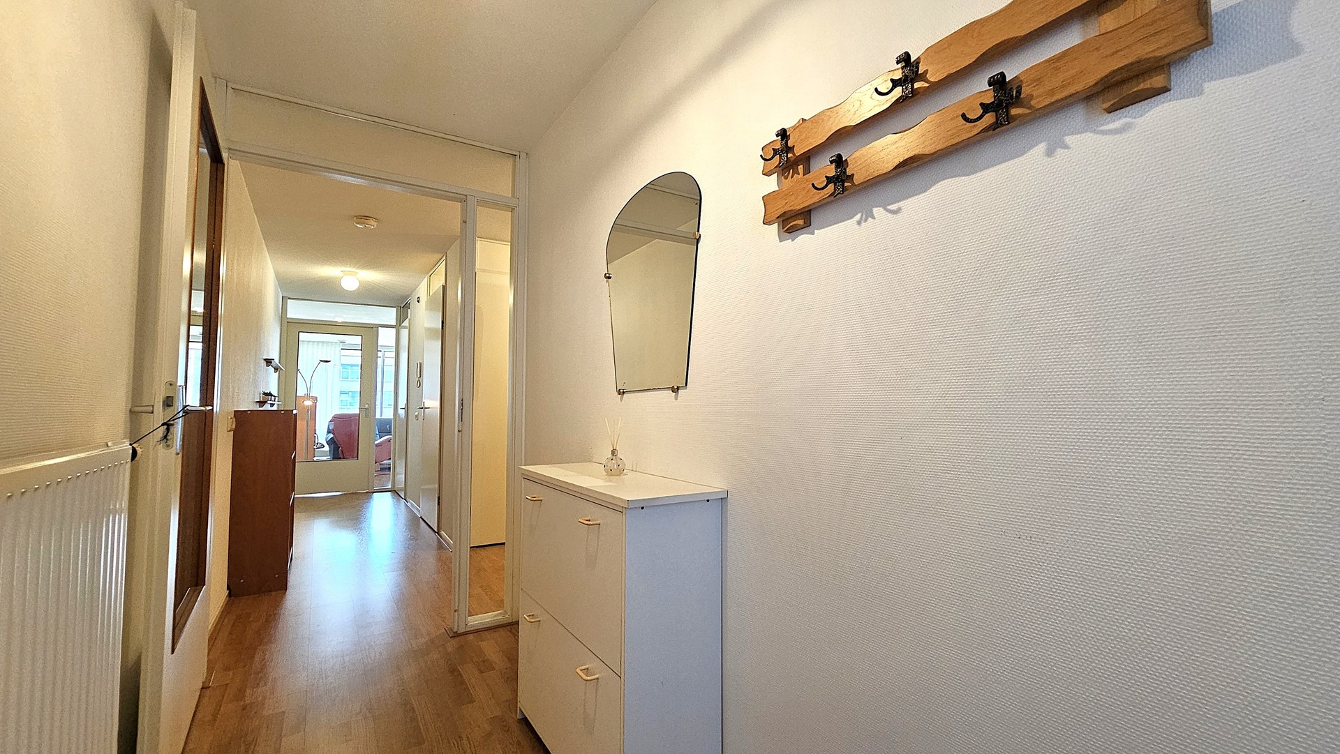 Bij binnenkomst word je direct verwelkomd door een ruime hal die toegang geeft tot alle vertrekken – overzichtelijk, licht en uitnodigend.