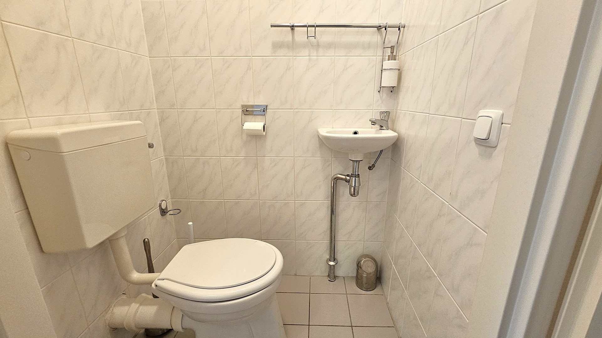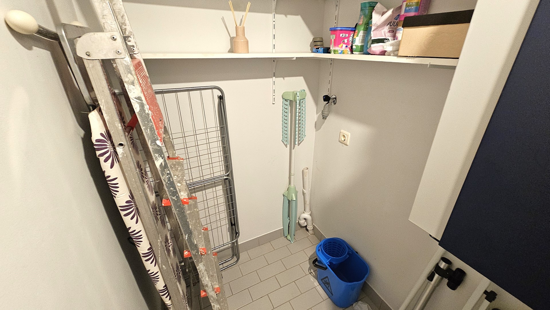 Het appartement beschikt over twee ruime slaapkamers, een net afgewerkte badkamer met douche in bad en wastafel, een separaat toilet, en een interne berging met aansluiting voor wasmachine en droger – plus ruimte voor extra opslag.