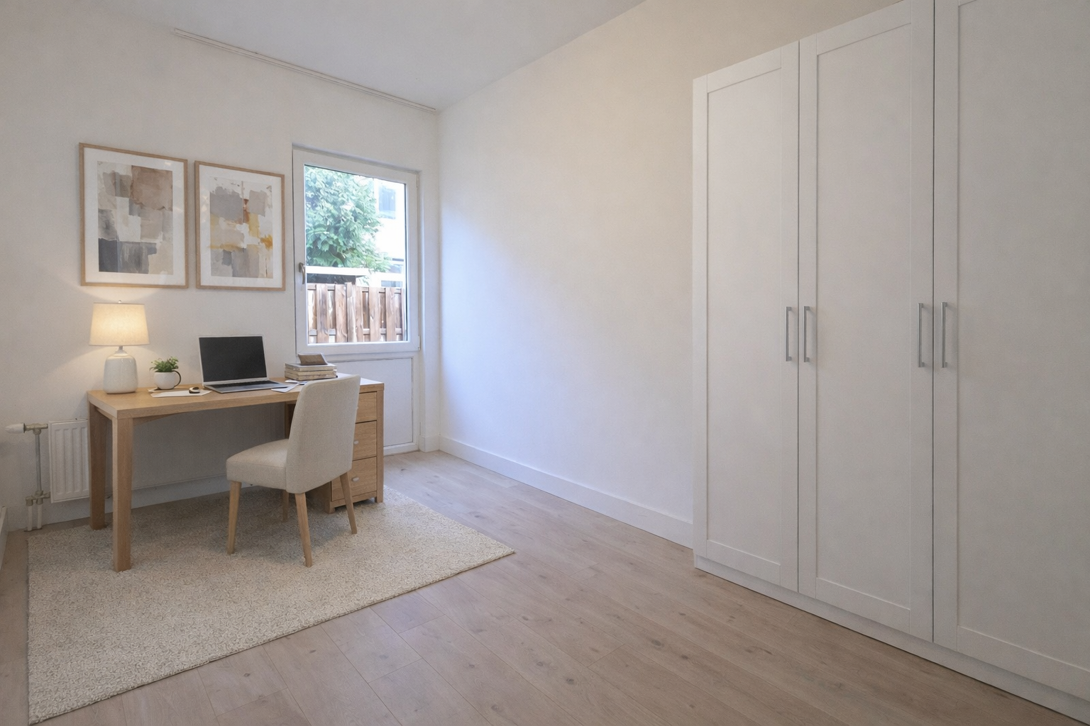 Aan de rustige achterzijde liggen twee slaapkamers. De hoofdslaapkamer grenst direct aan de tuin, waardoor binnen en buiten mooi in elkaar overlopen. Ideaal voor wie graag de dag begint met de deur open naar buiten. De tweede kamer is perfect als thuiswerkplek, logeerkamer of kinderkamer – flexibel in te delen naar jouw fase in het leven.